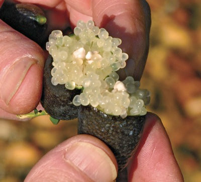This fascinating and unusual variety is sometimes called "citrus caviar". Contained in the dark purple, 3” long fruit are a multitude of juicy capsules bursting with intense, sweet-tart, lemon-lime flavor. Found in the wild in Australia, Finger Limes have only recently been introduced to the US.
