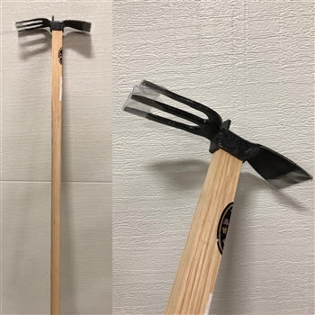You asked for it...we got it !! Crafted after the popular P-40...now we have a LONG handled version. Traditional Japanese hoe on one side and cultivator on the other. This extremely strong hoe is hand forged with hardwood handle. 3" x 9.5" head, 47" overall